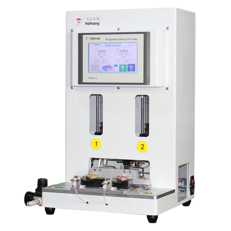 本機是一款用於測量成品電子煙吸阻(zǔ)的設備,廣泛(fàn)應用於電子煙生產質量控製和檢驗領域。采用活塞抽吸模擬人工抽吸原理進行(háng)工作。具體操作(zuò)流程如下: 首先,將待測電子煙用管子接好在(zài)測試工位上。此時,設備中的活(huó)塞模擬人工(gōng)吸煙動作,並將(jiāng)固定流量(例如17.5ml/s)的空氣吸入電子煙。在此過程中, 電子煙的吸入端會產生一(yī)定的真空(kōng)壓(yā)力,即吸阻。測試儀將實時測量這個(gè)壓力,即實時吸阻。通過這種方式(shì),可以準確測量電子煙的(de)吸阻特性。