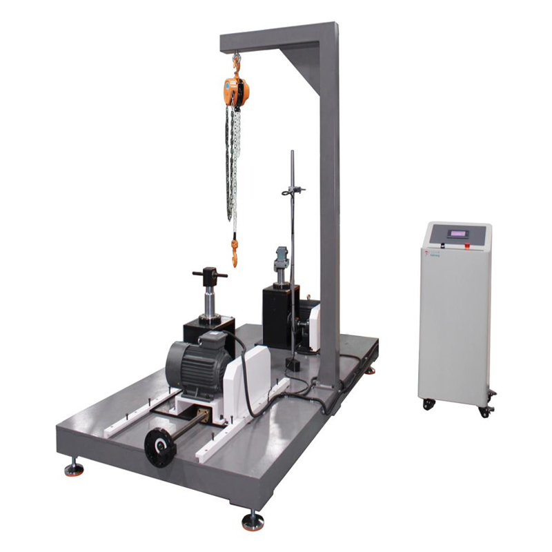 裝有鞍管的車架試件,應將鞍管固定在裝配限位標誌處。在(zài)鞍(ān)座部位裝一個鞍形荷重座,並分別在左右吊杆上裝圓形砝碼:荷重座、吊杆及砝碼的總重量為荷重量。鞍管荷重頂端20mm處的中心位置用夾具緊固,中軸部的荷重固定(dìng)在左右兩側,前管荷重用緊固螺母固定。振動頻率可在6.6~10Hz之間任意選擇,但應避免(miǎn)共振頻率(lǜ)。